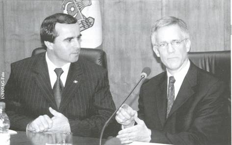 de presă la care, pe lîngă Prim-ministrul Vasile Tarlev, au mai participat