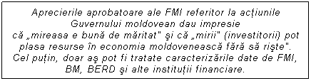 experţii de la Fondul Monetar Internaţional (FMI) nu au lăudat atît de sincer