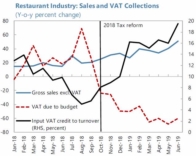 Industria restaurantelor: vânzări și TVA colectat